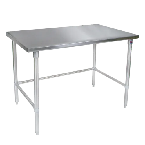 Work Table, 132"W x 36"D, 14/300 stainless steel flat top, with Stallion Safety Edge front & back, 90° turndown on sides, box channel understructure with sound deadening tape, galvanized legs, side & rear adjustable bracing, adjustable bullet feet, NSF, CSA-Sanitation, KDOptions for John Boos ST4-36132GBK