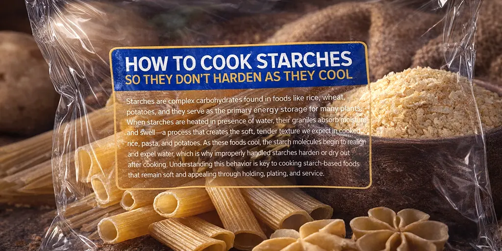 To cook starches that stay tender, chefs must understand how to cook rice, how to cook pasta, and how to cook potatoes with cooling in mind—not just doneness. This guide explains what causes starches to harden, how to prevent it, and how to keep them soft through holding, plating, and service.
