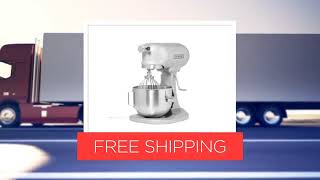 These stainless steel mixers include accessories like a bowl, wire whip, flat beater, and dough hook. The floor models contain a bowl truck.