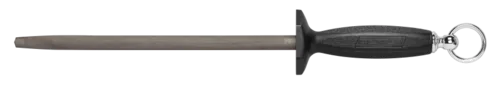 Traditional™ (1012B) Butcher Steel, 10", magnetized, medium weight, medium coarseness, high-carbon steel, polypropylene black handle with guard and heavy duty ring, Made in USAQ & A