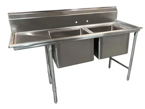 Regaline Sink, 2-compartment, with left-hand drainboard, 24" front-to-back x 18"W sink compartment, 12" deep, with 8"H backsplash, stainless steel open frame base, side crossrails, 18" drainboard, 1" adjustable bullet feet, 16 gauge 304 series stainless steel, overall 31" F/B x 61 7/8" L/R, NSFQ & A