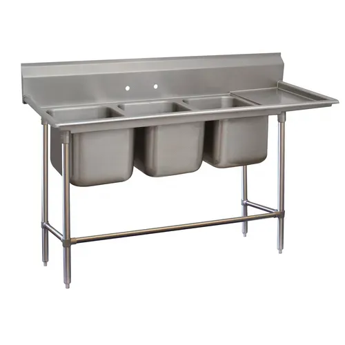 Advance Tabco 94-83-60-24R Commercial Sink, (3) Three Compartment, 14 Gauge Stainless Steel Construction with Stainless Steel Legs and With Right-hand Drainboard - 95" W