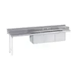 Dishtable with 3-compartment Sink, 143”W, (3) 18" x 24" x 14" bowls, 16 gauge 304 stainless steel top, stainless steel legs & front-to-back crossrails, attaches to left of dish machine operator, stainless steel bullet feet, 77" left drainboard, bowls are located 12" from machine, NSF (must verify machine to make sure the control box does not interfere)Q & A