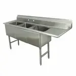 Advance Tabco FC-3-1620-18L-X Commercial Sink, (3) Three Compartment, 16 Gauge Stainless Steel Construction with Stainless Steel Legs and With Left-hand Drainboard - 68.5" W