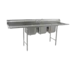 Special Value Fabricated Sink, 3-compartment, 24" right & left drainboards, bowl size 18" x 24" x 14" deep, 16 gauge 304 stainless steel, tile edge splash, rolled edge, 8" OC faucet holes, stainless steel legs with adjustable side cross-bracing, 1" adjustable stainless steel bullet feet, overall 30" F/B x 102" L/R, NSF (Special Value NET Pricing)