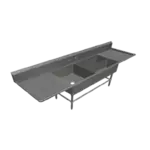 Fabricated Sink, 3-compartment, 24" left drainboard, bowl size 30" x 24" x 14" deep, 16 gauge 304 stainless steel, tile edge splash, rolled edge, 8" OC faucet holes, stainless steel legs with adjustable side cross-bracing, 1" adjustable stainless steel bullet feet, overall 30" F/B x 117" L/R, NSF (requires 2 faucets)