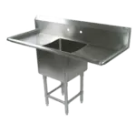 Fabricated Sink, 1-compartment, 18" right drainboard, bowl size 16" x 20" x 14" deep, 14 gauge 304 stainless steel, tile edge splash, rolled edge, 8" OC faucet holes, stainless steel legs with adjustable side cross-bracing, 1" adjustable stainless steel bullet feet, overall 26" F/B x 36-1/2" L/R, NSF