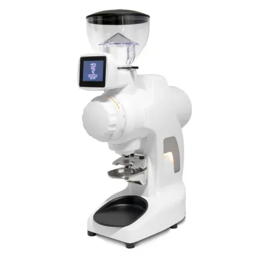 Bezzera® Sirio Specialty coffee grinder, automatic, touchscreen control panel, clear bean hopper for 1.2 kg capacity, 3 level variable speed, 33 lbs daily production, grinding adjustment stepless micrometric system, removable magnetic filter holder, flat vertical burrs Ø77mm, aluminum body, white finish, 110-120v/50-60, Made in ItalyQ & A