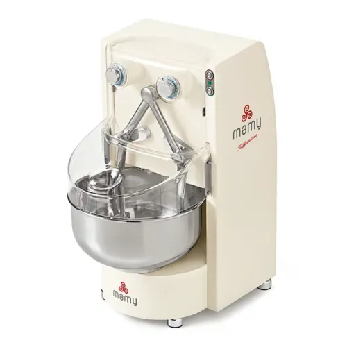 Mamy® by Mecnosud Diving Arm countertop Mixer, 15.5 lb. dough capacity, 10.6 Qt bowl volume capacity, variable speed, fixed bowl, manual control, timer, stainless steel bowl, tool-holder shaft, and arms, plexiglass bowl cover, painted steel construction, 0.5 kW, 110V/50-60hz , 4.5 amps, NEMA 5-15P, Made in ItalyQ & A