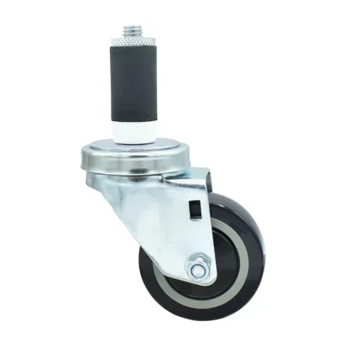 Swivel Caster, 1-1/4" expanding stem, 3" polyolefin wheel, 300 lb. capacity, fits 1-1/4"W OD tubing resistant to acids and caustics, double ball bearing, operational temp range -45º to 180ºF, zinc plated steeld steelQ & A