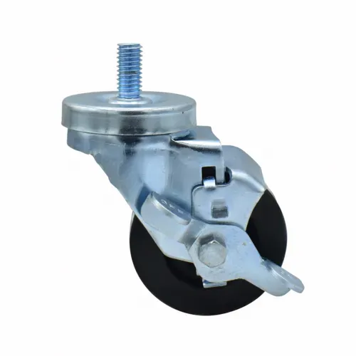 Hard Rubber Wheel, 3" diameter, 1/2"-13 x 1" threaded stem, with top lock brake, 300 lb. weight capacity, operational temp range -40° to 160° F, nylon bearing sleeve, double ball bearing, zinc plated, , NSFQ & A