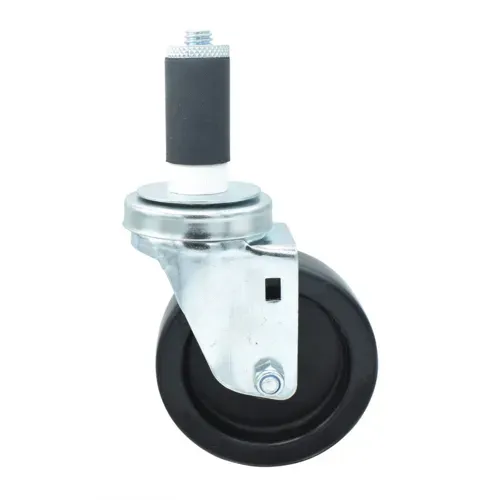 Swivel Caster, 1-1/4" expanding stem, 4" polyolefin wheel, 300 lb. capacity, fits 1-1/4"W OD tubing, resistant to chemicals and solvents, double ball bearing, operational temp range -45ºF to 180ºF, polyolefin tread, zinc plated steelQ & A