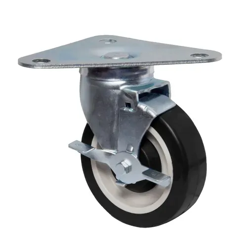 Caster Kit, 5" diameter heavy duty swivel, with 5-3/8" x 7-1/2" triangular plate, non-marking polyurethane tread, top lock brake, 500 lb. capacity, resistant to acids & caustics, 1/2" king pin, double ball bearing, operational temp range -45° to 180° F, fits Blodgett® convection ovens, zinc plated, POP box, NSF (4 per kit)Q & A