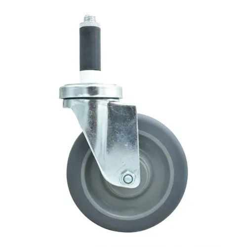 Swivel Caster, 1" expanding stem, 5" gray rubber wheel, 250 lb. capacity, fits 1"W OD tubing, non-marking rubber tread, resistant to oil, grease, water and most solvents, double ball bearing, operational temp range -45ºF to 180ºF, zinc plated steelQ & A