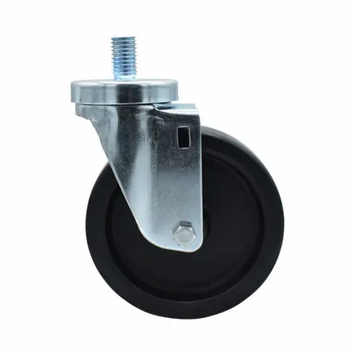 Polyolefin Wheel, 5" diameter, 5/8"-13 x 1" threaded stem, without brake, 300 lb. weight capacity, operational temp range -45° to 180°F, double ball bearing, zinc plated, , NSFQ & A