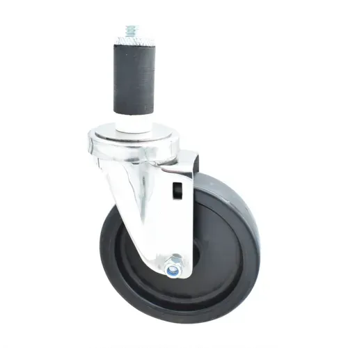 Swivel Caster, 1-1/4" expanding stem, 5" polyolefin wheel, fits 1-1/4"W OD tubing, resistant to chemicals and solvents, double ball bearing, operational temp range -45º to 180ºF, stainless steelQ & A
