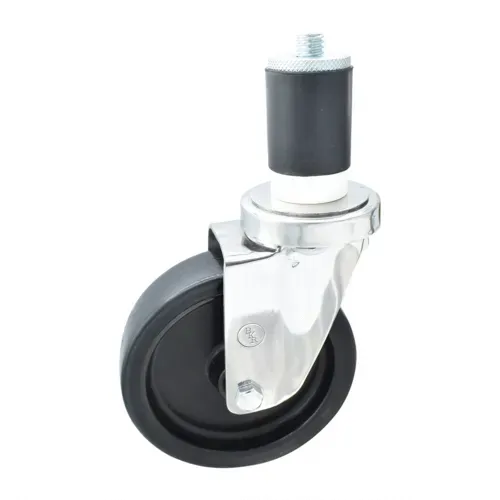 Swivel Caster, 1-1/2" expanding stem, 5" polyolefin wheel, 300 lb. capacity, fits 1-1/2"W OD tubing, resistant to chemicals and solvents, double ball bearing, operational temp range -45ºF to 180ºF, stainless steelQ & A