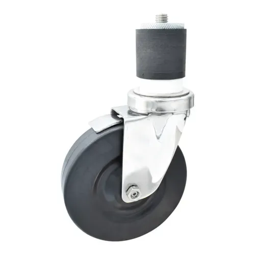 Swivel Caster, 2" expanding stem, 5" hard rubber wheel, top lock brake, 300 lb. capacity, fits 2"W OD tubing, double ball bearing, operational temp range -40ºF to 160ºF, stainless steelQ & A