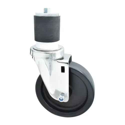 Swivel Caster, 2" expanding stem, 5" polyolefin wheel, 300 lb. capacity, fits 2"W OD tubing, double ball bearing, resistant to chemicals and solvents, operational temp range -45º to 180ºF, stainless steelQ & A
