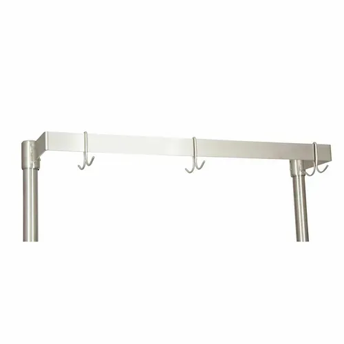 Pot Rack, table mount, 48"W x 50"H, single-bar design, adjustable, extends 8" out from uprights, stainless steel construction, includes (8) stainless steel double-prong pot hooks & self-tapping screwsQ & A