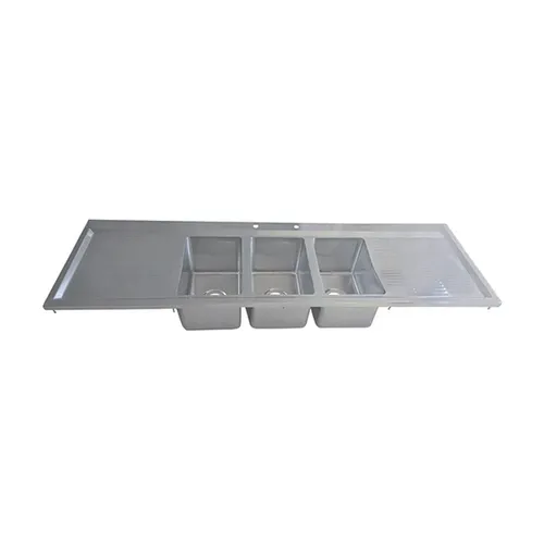 Drop-In Sink, three compartment, 70-1/8"W x 20"D x 10-5/8"H overall size, (3) 10" wide x 14" front-to-back x 10" deep compartments, 18" drainboards on left & right, marine edge, includes (1) deck mount faucet (BK8D-8G-G) & (3) basket drains (BKDR-4), 18/304 stainless steel construction, 69-3/8" x 19-1/2" cutout required, lead free, NSFQ & A