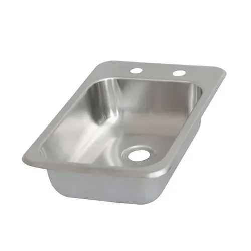 Drop-In Sink, one compartment, 12-1/8"W x 18-1/2"D x 5"H overall size, (1) 10" wide x 14" front-to-back x 5" deep compartment, 4" OC deck mount faucet holes, includes basket drain (BKDR-4), 20/304 stainless steel construction, 11-1/2" x 17-7/8" cutout requiredQ & A