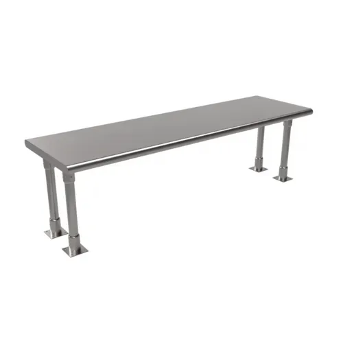 Single Overshelf, table mount, 60"W x 18"D, heavy duty bullnose, rounded edges, includes (3) upright supports, self-tapping screws, 16/304 stainless steel, NSFQ & A