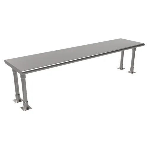 Single Overshelf, table mount, 72"W x 18"D, heavy duty bullnose, rounded edges, includes (3) upright supports, self-tapping screws, 16/304 stainless steel, NSFQ & A