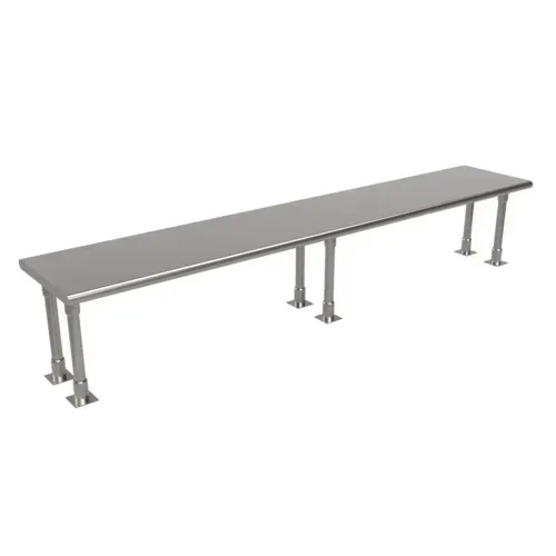 Single Overshelf, table mount, 96"W x 18"D, heavy duty bullnose, rounded edges, includes (3) upright supports, self-tapping screws, 16/304 stainless steel, NSFQ & A