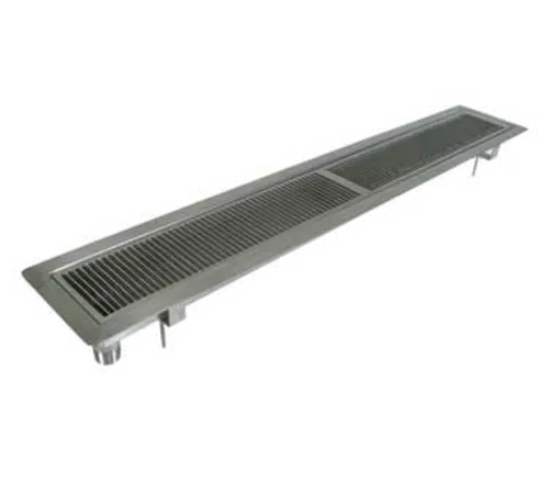 Urn Trough with Drip Plate, 72"L, 7/8" deep tray, removable, 1" flush mount & 1/4" rounded corners trim plate, 1-1/4 " OD drain, 14/304 stainless steel, mounting hardware includedQ & A
