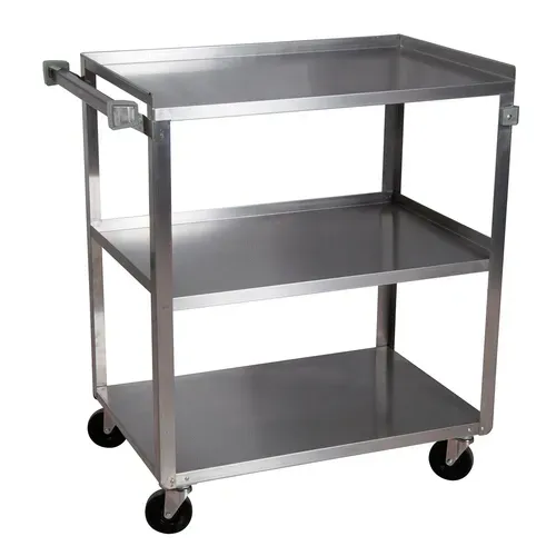 Utility Cart, 3-tier, 27-1/2"L x 15-1/2"W x 32-1/8"H, 24"L x 15-1/2"W shelf, standard grade, 20 ga. stainless steel, shipped full assembled, (4) 3-1/2" swivel casters, 300 lbs weight capacity, NSFQ & A