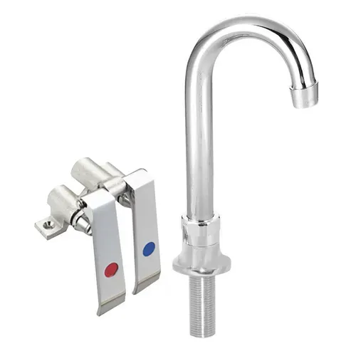 Dual Pedal Metering Knee Valve with Deck Mount Spout, 3" gooseneck spout, cast body, chrome plated pedals, (knee valve bracket required for hand sinks), lead free, cCSAusQ & A