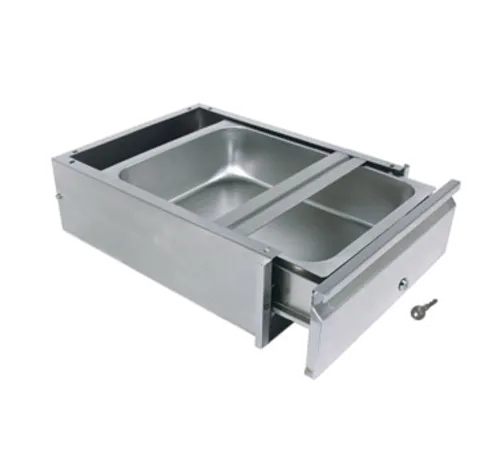 Drawer Assembly, with lock, 15"D x 20"W x 5"H pan size, 200 lb. capacity, self-closing, stainless steel assembly with stainless steel pan, fits 18"D metal or wood work tables, universal mounting kit included to attach to metal tables, ADA compliant, NSFQ & A