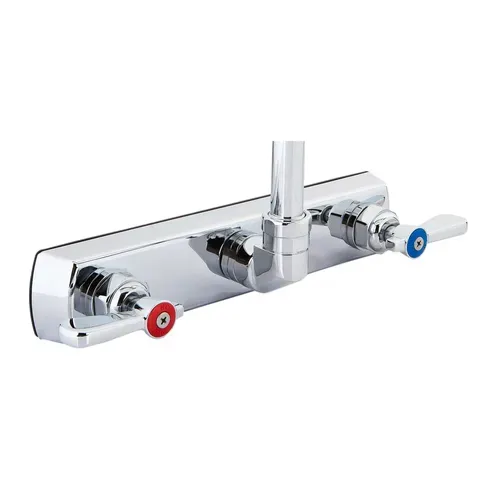 OptiFlow™ Heavy Duty Solid Faucet Body, splash-mounted, 8" OC, no spout, double O-ring spout seal, 1/4 turn ceramic cartridges, polished nickel chrome finish, lead freeQ & A