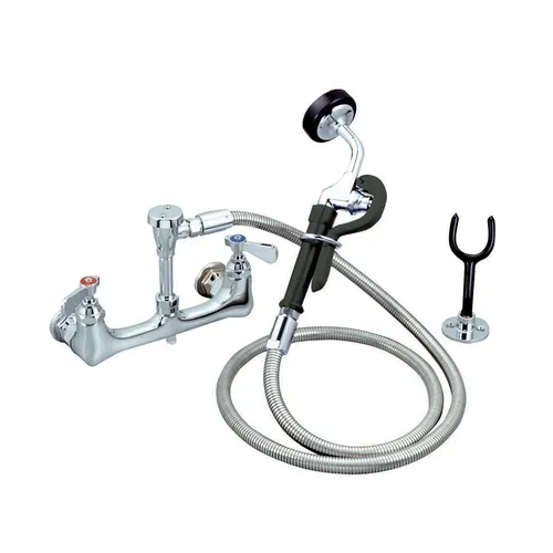 OptiFlow™ Utility Spray Faucet, splash-mounted, 8" OC, 72" stainless steel braided hose, vacuum breaker, integral check valves, 1/4 turn ceramic cartridges, includes wall hook, lead free, NSFQ & A