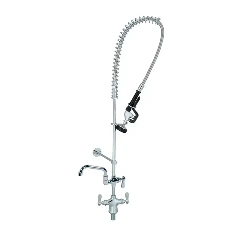 OptiFlow™ Pre-Rinse Assembly, with 14" add-on faucet, deck mount, single hole center, triple ply hose, 12" wall bracket, 1/4 turn ceramic valves, integral check valve, 1/2" female inlets, includes hot & cold mixing hoses, lead free, NSF, cCSAusQ & A
