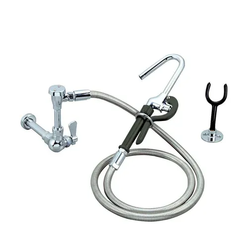 OptiFlow™ Single Valve Pot Filler, splash-mounted, single hole center, 72" stainless steel braided hose, vacuum breaker, includes wall hook, high polished nickel chrome finish, lead free, NSFQ & A