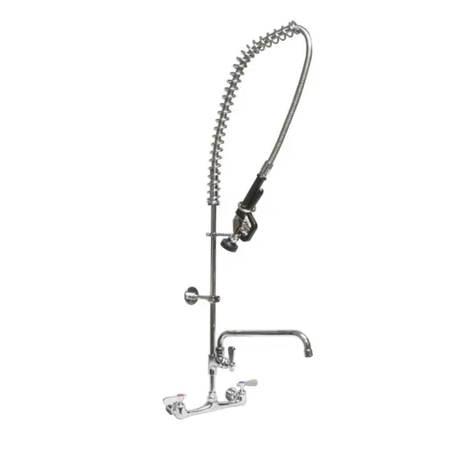 WorkForce™ Pre-Rinse Assembly, splash mount, with 16" add-on-faucet, 8" OC, includes 44" stainless steel braided hose (triple-ply at 300psi), 12" wall bracket, 1/2" female inlets, 1/4 turn ceramic valves, lead free, NSF, cCSAusQ & A