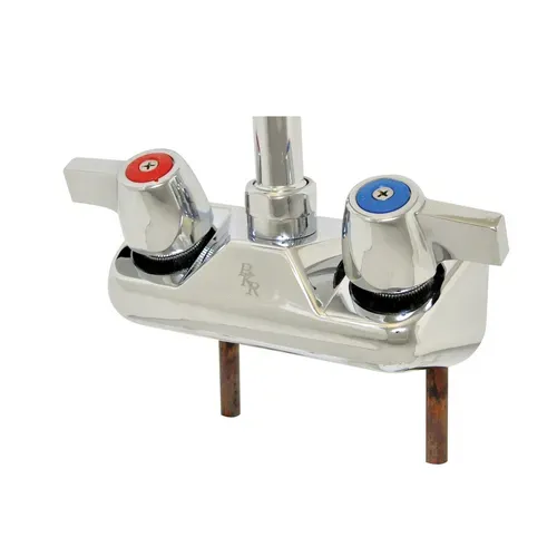 WorkForce™ Standard Duty Faucet Body, shallow splash-mounted, 4" OC, no spout, double O-ring spout seal, 1/4 turn ceramic cartridges, polished nickel chrome finish, lead free (wrist blade handles not available)Q & A