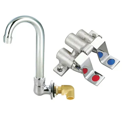 OptiFlow™ Foot Valve Kit, dual pedal, includes splash mounted 3-1/2" gooseneck spout, cast body & chrome plated pedals, lead free, NSF, cCSAusQ & A