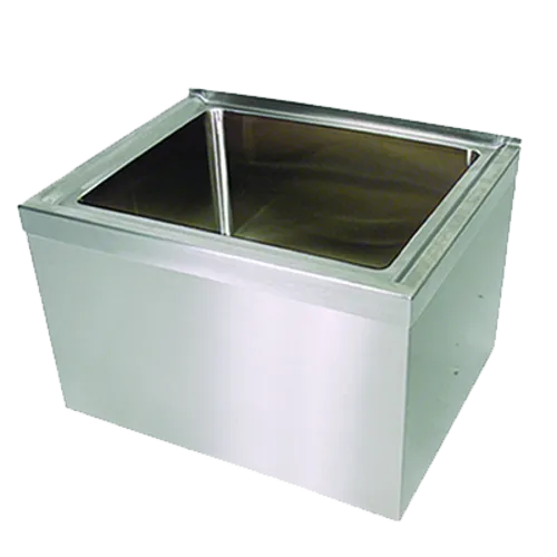 Mop Sink, floor mount, 24-1/2"W x 19-3/8"D x 11"H overall size, 20" wide x 16" front-to-back x 6" deep bowl, 3-1/2" heavy duty brass basket drain (BKDR-HD4), (3) skirted sides, 18/304 stainless steelQ & A