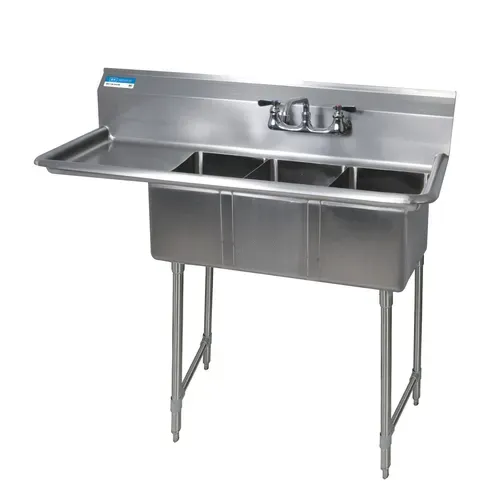 BK Resources BKS-3-1014-10-15LS Commercial Sink, (3) Three Compartment, Construction with and - 47.50" W