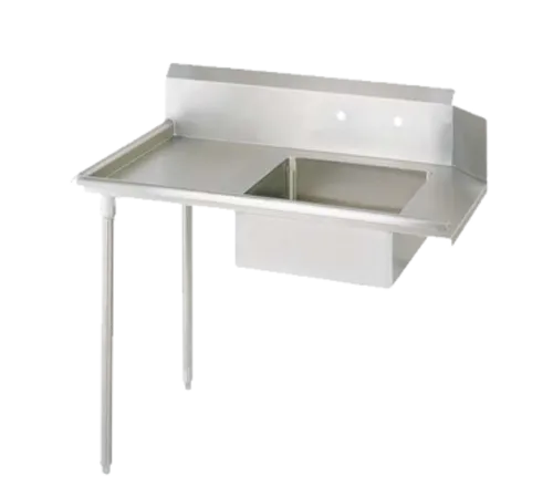 Soiled Dishtable, straight design, 36"W x 30-3/8"D x 46-1/4"H, left-to-right operation, 18/304 stainless steel top, 10"H backsplash, 20" x 20" x 8" deep pre-rinse sink, 8" OC splash mount faucet holes, raised rolled edges on front & side, includes basket drain (BKDR-4), galvanized steel legs & side bracing, high impact corrosion resistant adjustable bullet feet, NSFQ & A