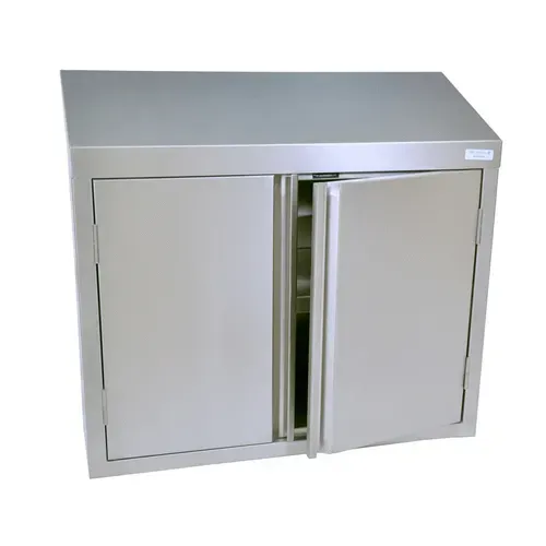Cabinet, wall mount, 48"W x 15"D x 32-1/2"H, enclosed front, (2) solid double-pin hinged doors, (1) fully adjustable shelf, 18/304 stainless steel construction, NSFQ & A