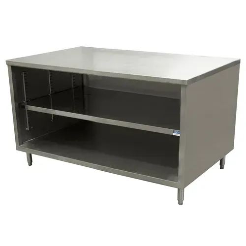 Chef Table, cabinet base with open front, 48"W x 36"D x 34-3/4"H overall size, 16/304 stainless steel top, 18/304 stainless steel body, enclosed with stainless steel panels on sides & rear, 6” stainless steel legs with 1" height adjustment, stainless steel feet, NSFQ & A