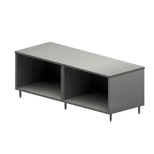Chef Table, cabinet base with open front, 96"W x 36"D x 34-3/4"H overall size, 16/304 stainless steel top, 18/304 stainless steel body, center mullion, enclosed with stainless steel panels on sides & rear, 6” stainless steel legs with 1" height adjustment, stainless steel feet, NSFQ & A