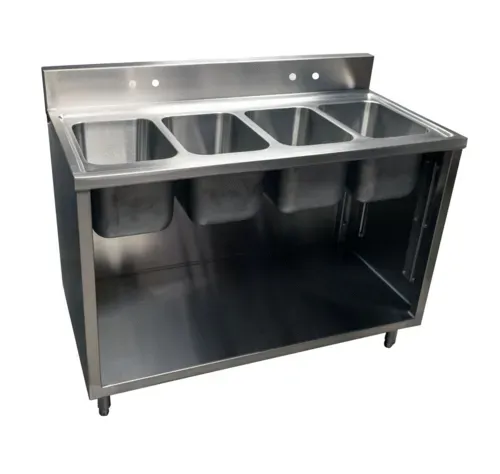 Sink Cabinet, (4) compartment, overall dimensions 48"W x 24"D x 39-3/4"H, working height 34-3/4", 18/304 stainless steel, deep drawn contruction, marine edge, accepts (2) 4" OC faucets, (4) BKDR-4 drains, NSFQ & A