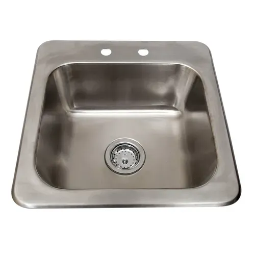 Drop-In Sink, one compartment, 19"W x 19"D x 8"H overall size, (1) 16" wide x 14" front-to-back x 8" deep compartment, 4" OC deck mount faucet holes, includes basket drain (BKDR-4), 18/304 stainless steel construction, NSFQ & A