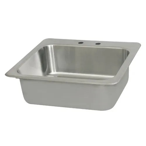 Deep Drawn Drop-In Sink, one compartment, 23"W x 21"D x 8"H overall size, (1) 20" wide x 16" front-to-back x 8" deep compartment, 4" OC deck mount faucet holes, includes basket drain (BKDR-4), 18/304 stainless steel construction, NSFQ & A
