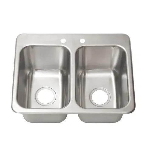 Drop-In Sink, two compartment, 24"W x 18-1/2"D x 10"H overall size, (2) 10" wide x 14" front-to-back x 10" deep compartments, 4" OC deck mount faucet holes, includes (2) basket drains (BKDR-4), 18/304 stainless steel construction, NSFQ & A